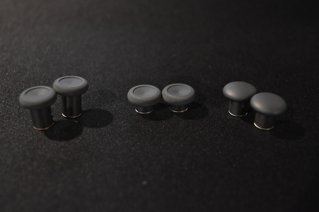 Второе главное отличие Xbox One Elite Controller от обычного геймпада – стики, которых в комплекте с элитным контроллером аж 3 пары – стандартные, выпуклые и удлиненные. Стандартные стики, по сути, идентичны тем, что были в обычной версии контроллера. Вторая пара немного длиннее стандартных, но вместо вогнутой вовнутрь имеют выпуклую основу. Третья пара – удлиненная версия стандартных стиков. Здесь игрок сам волен выбирать в какой комбинации и какие стики ему будет удобнее использовать в играх. На самом деле, на словах очень сложно передать ощущения, но даже стандартные стики (не говоря о дополнительных) в Elite Controller имеют более плавный ход, по сравнению с теми, которые были в обычном геймпадое Xbox One.